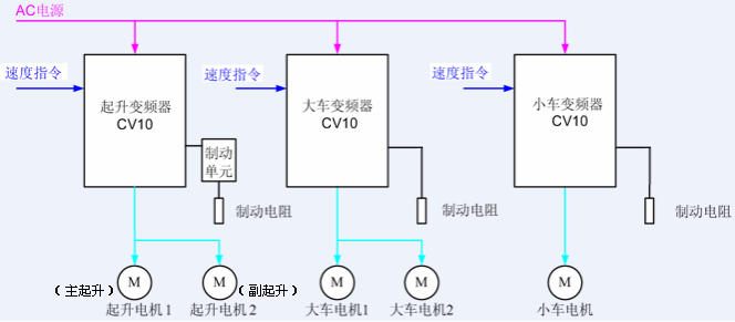 1、1臺主起升變頻器驅動(dòng)1臺主起升電機。