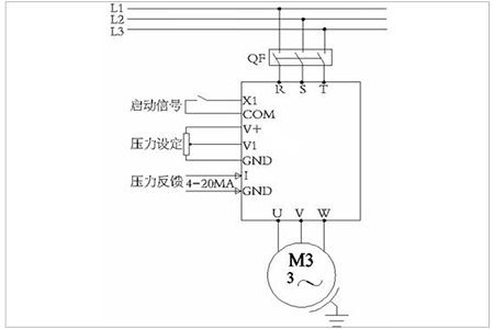 壓力反饋:壓力傳感器檢測管道壓力反饋給變頻器做