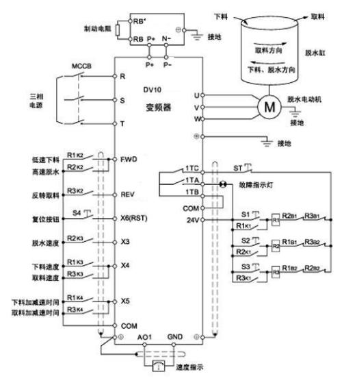 3、電流限幅控制功能為閉環(huán)方式,可靠有效,能以額定電流加速和減速,不跳保護,根據缸體內物料的質(zhì)量,自動(dòng)延長(cháng)或減小加減速時(shí)間,脫水效率高。