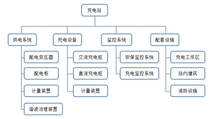 電動(dòng)汽車(chē)充電站包括供電系統、充電設備、監控系統及相應的配套設施。一個(gè)完整的充電站的總體結構如下圖: