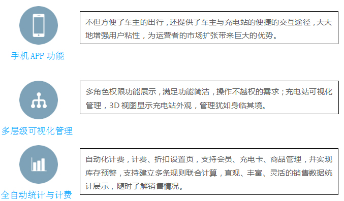 能量協(xié)調與管理:結合電能質(zhì)量與當前設備的實(shí)際運行工況,對站內各充電機的運行定值參數和運行狀態(tài)進(jìn)行調節,實(shí)現系統能量的協(xié)調和管理。用戶(hù)交易信息管理:對用戶(hù)賬號中的消費信息以及車(chē)輛充電過(guò)程信息進(jìn)行管理,如當前的剩余金額,充電歷史記錄??ㄆ瑢?chē)輛信息管理以及相關(guān)電池組及單體電池若干信息的管理,充電過(guò)程的歷史電流電壓波形。設備管理:監控系統能自動(dòng)統計主設備運行小時(shí)數、動(dòng)作次數、事故和故障次數以及相應的時(shí)間等,以便考核并合理安排運行和檢修計劃,設備檢修要掛檢修牌。